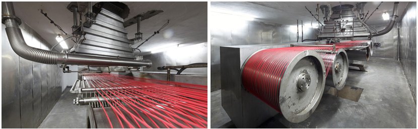 南洋電纜有限公司具有兩條國際領先水平AB型高頻高壓電子加速器,用電子加速器輻照電線電纜是輻照加工的重要領域,它集結電子技術、高能核物理技術、真空技術、計算機技術、輻照化學技術和電線電纜制造技術于一體,是當今高新技術的榜樣。由電子加速器產生的高能電子束,作用在聚合物內部,使聚合物的分子結構產生顯著的改變,由原本的線性變成不溶不熔的三維網狀結構,從而使材料具有特別的耐熱性、耐化學性、耐輻照性、高阻燃性、高強度性。